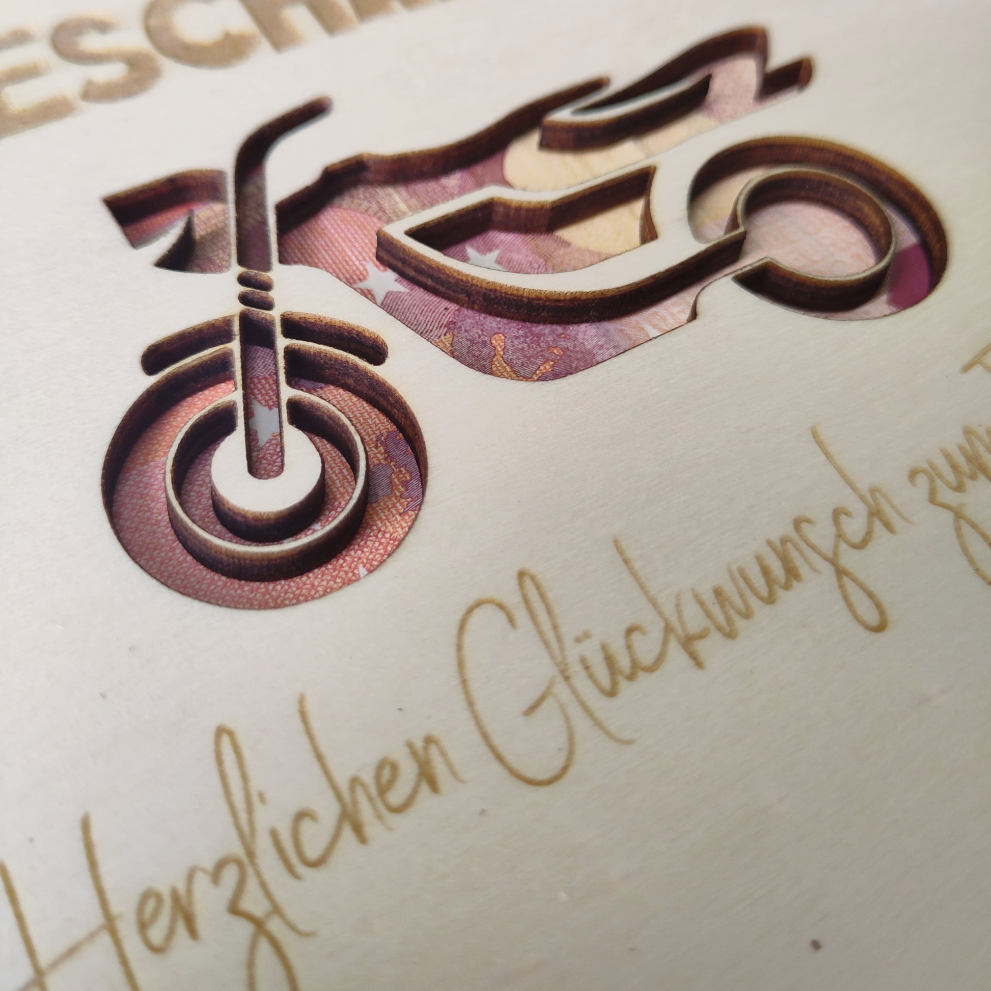 Geldgeschenk mal anders! Mit dieser tollen Holzverpackung, kann Geld ohne viel Aufwand zu einem individuellen Geschenk werden.