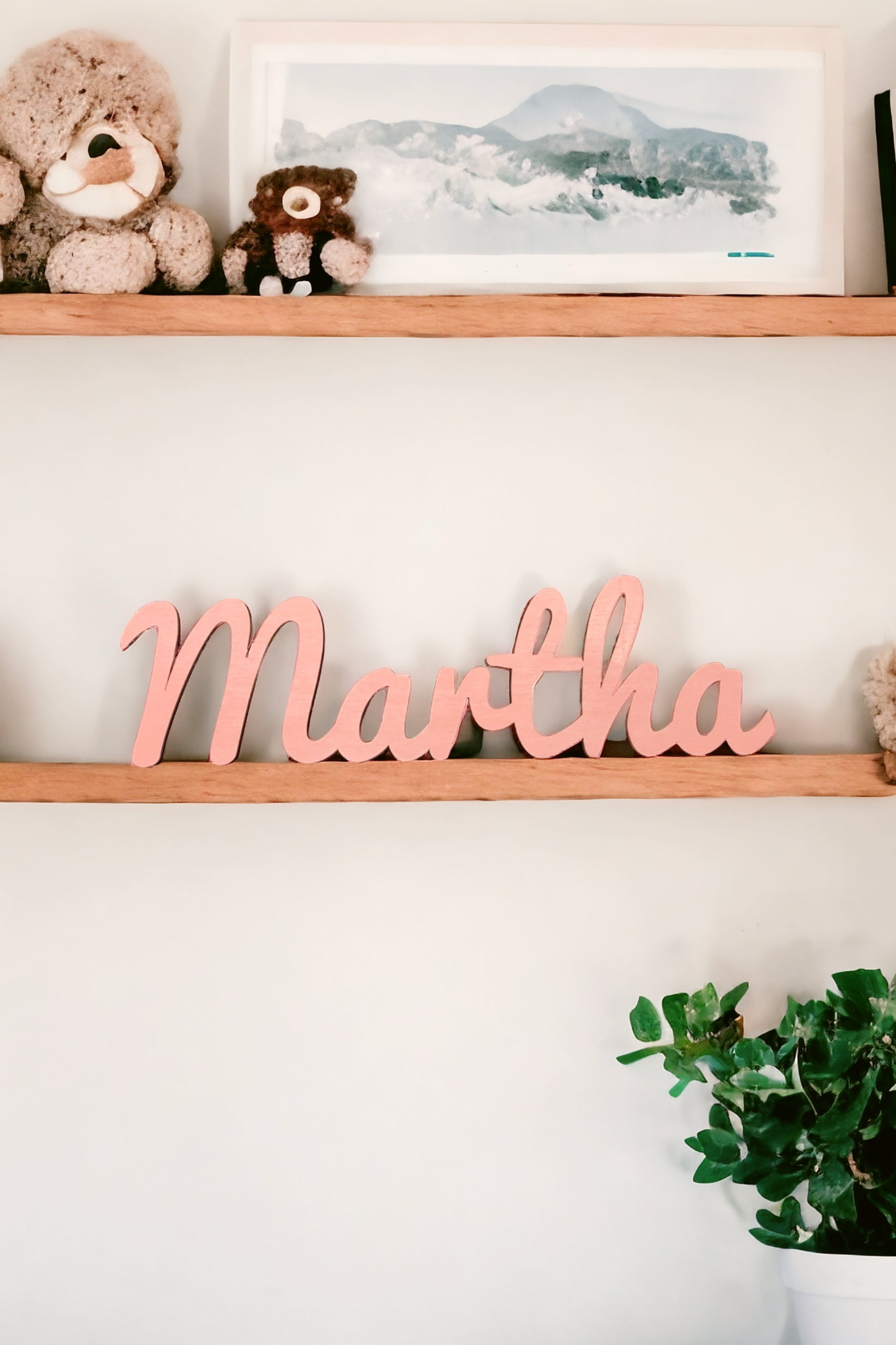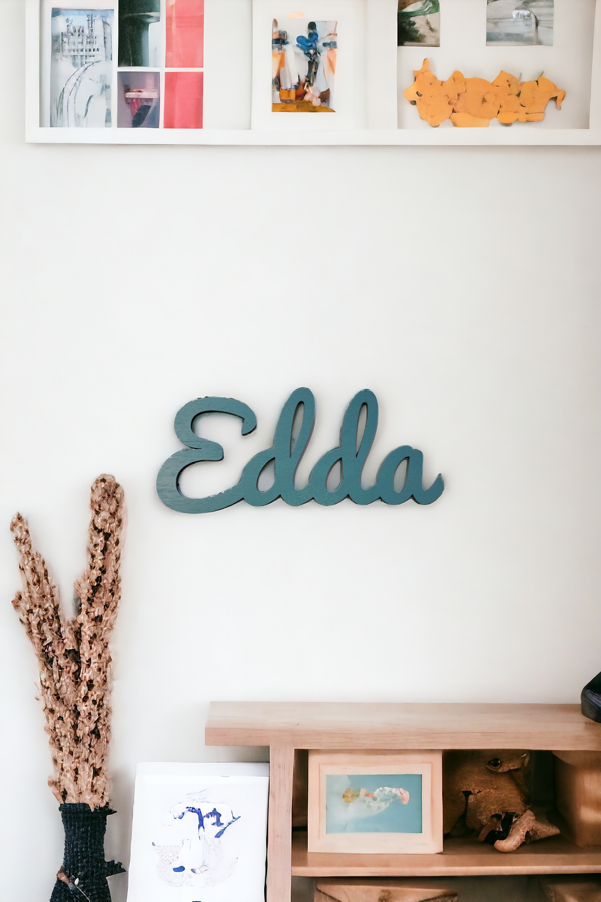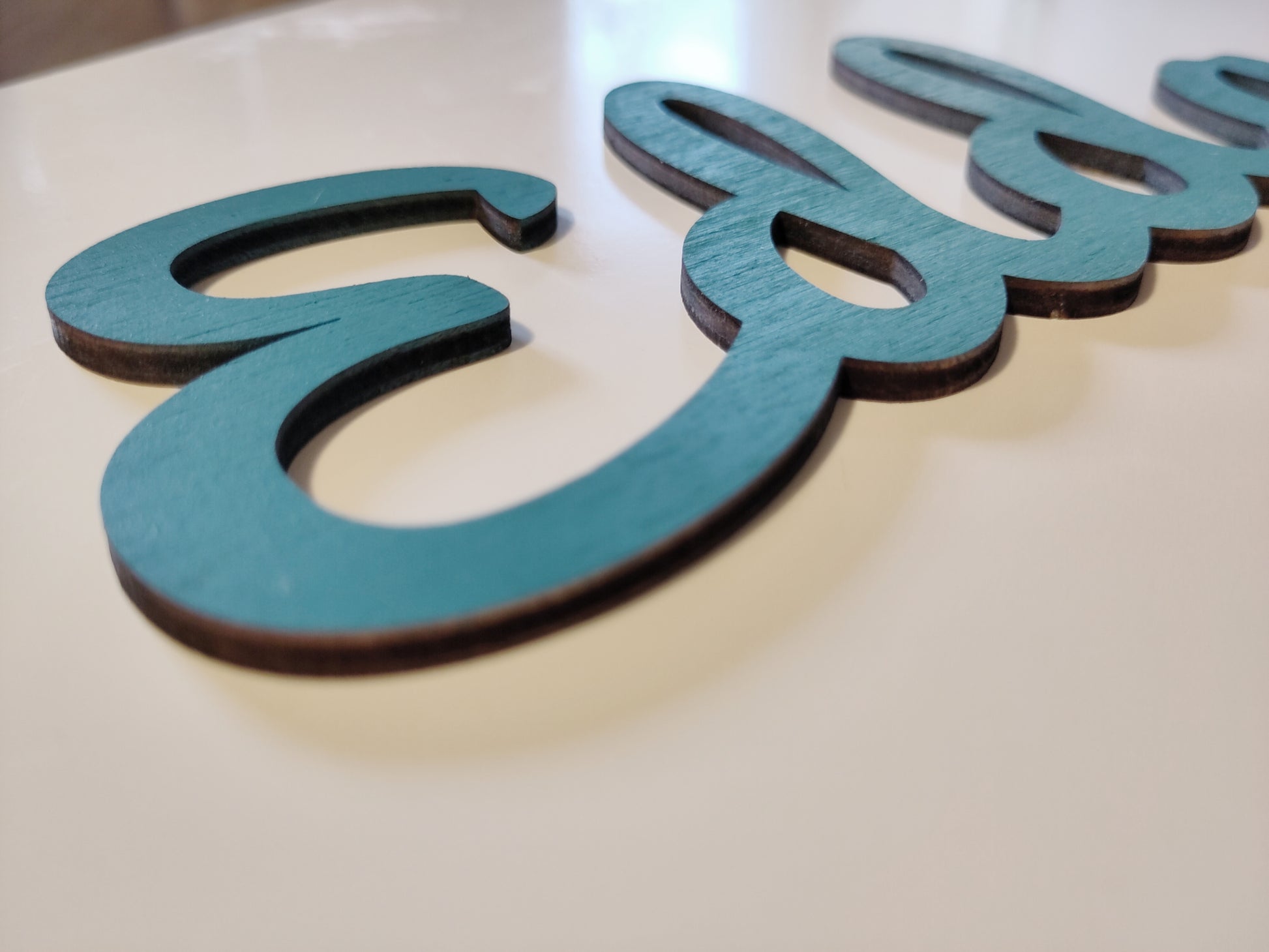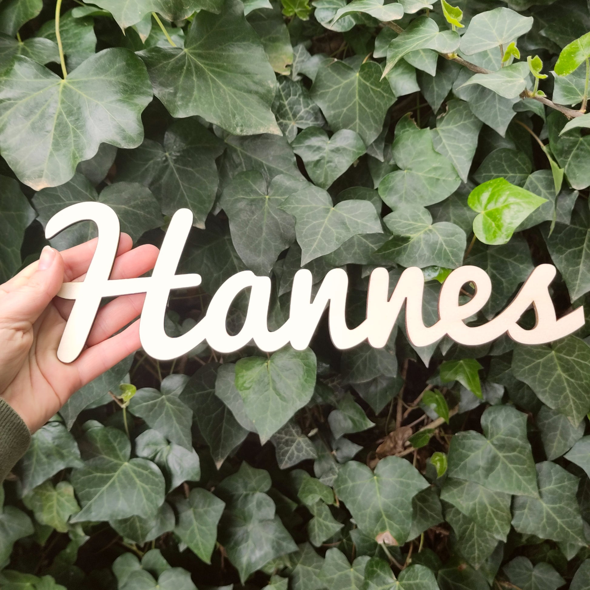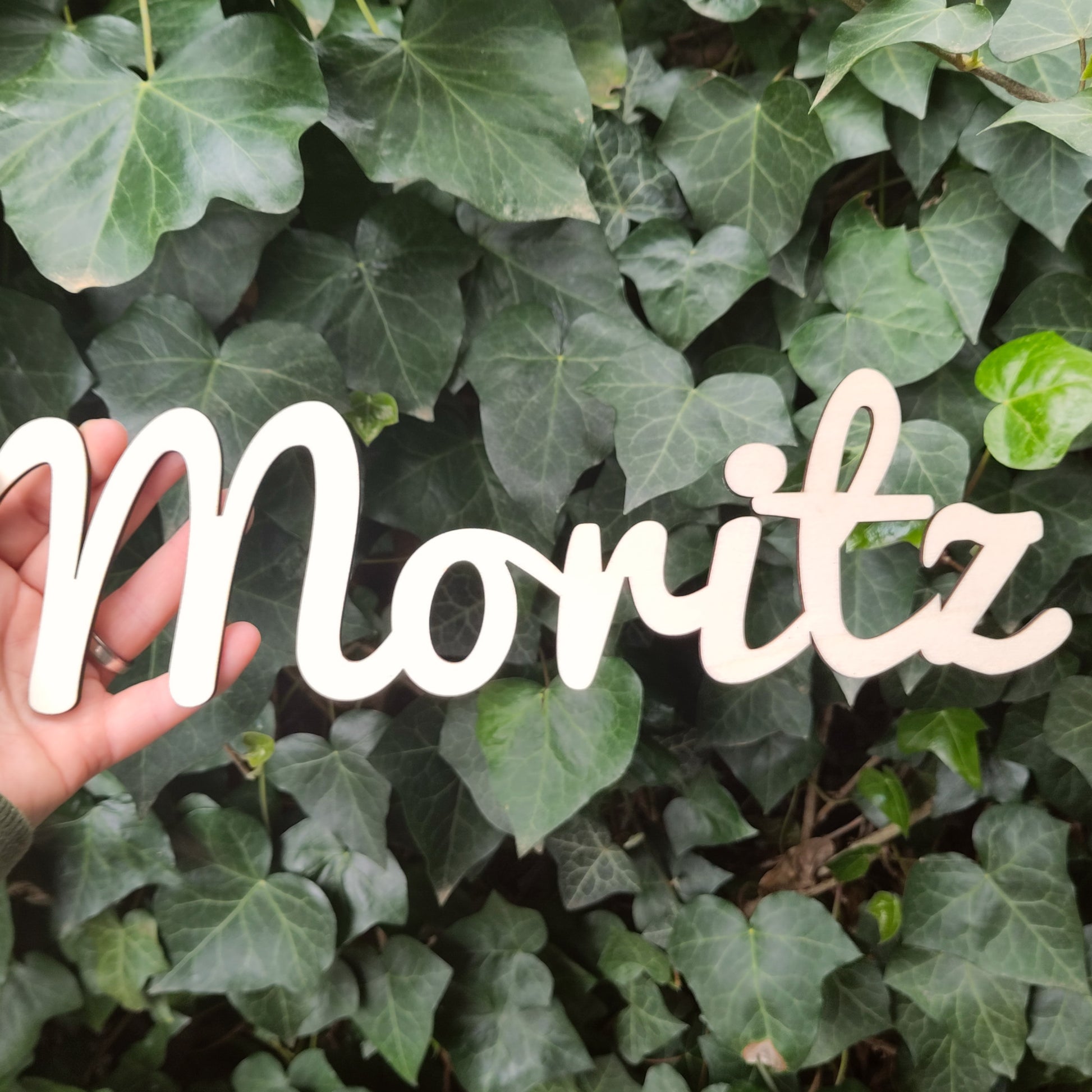Euer Wunschname aus Holz in Schreibschrift. Perfekt zur Dekoration oder Türbeschriftung.